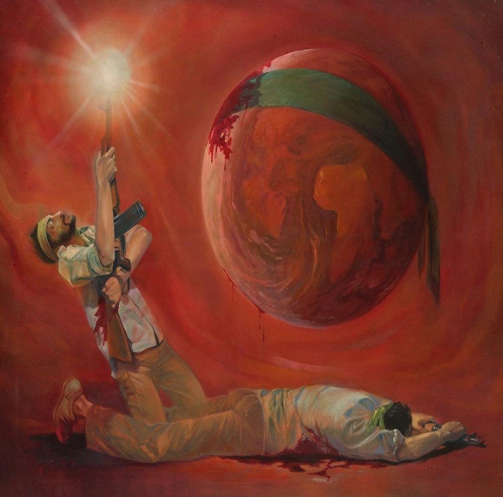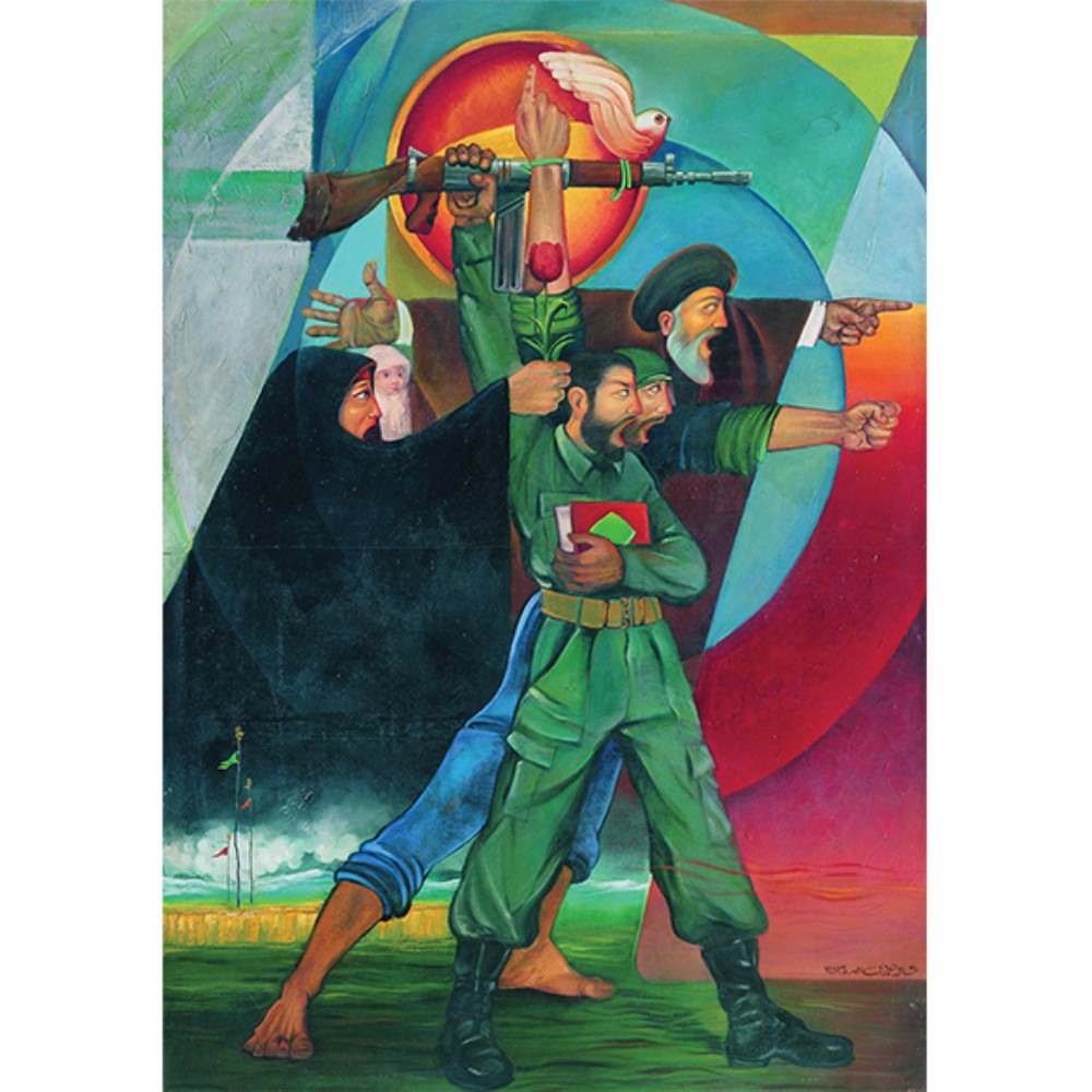 تابلوی «همسنگران قدس» اثر حسین خسروجردی که بهمن ۱۳۵۹ خلق شده است