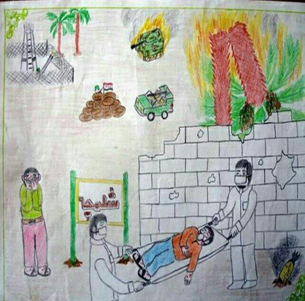 اثری از نونهالان هنرمند نقاشي با موضوع دفاع مقدس در روستاي ر...