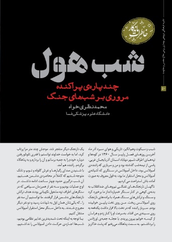 یک نارنجک دیگر منفجر شد .موجش چند متر مرا پرتاب شــب و ســکوت وهمانگیز ،تاریکی و هوای ســرد آذر ماه